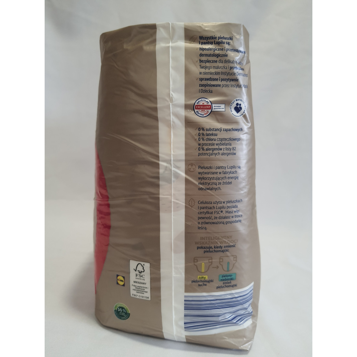 Індикатор вологи: Деякі варіанти підгузків Lupilu мають індикатор вологи, який змінює колір, сигналізуючи про необхідність заміни, що дуже зручно для батьків.